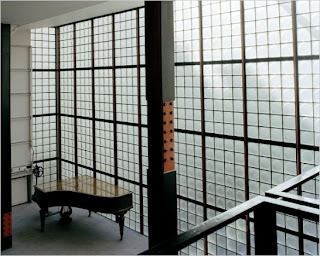 A casa de vidro de 1925, construída em Paris é exemplo desta atitude. Os cabos de electricidade são visíveis, os rebites de aço estão à vista, as cores anti-corrosão do aço são aplicadas na sua forma mais pura, o vidro é exibido  em toda a parede, são usadas divisórias em chapa perfurada como nas fábricas da época, enfim, sentimos que a fábrica foi transformada em casa e não a casa em fábrica como é o caso de Le Corbusier.
